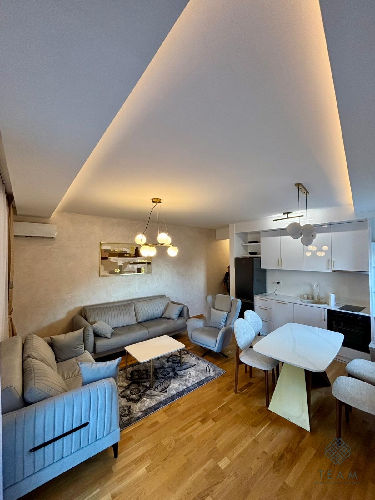 A modern, luxuriously furnished two-bedroom apartment of 70 m² is available for rent, located in a newly built and recently occupied building in the Lazi neighborhood, 4. Proleterska Street, Budva.