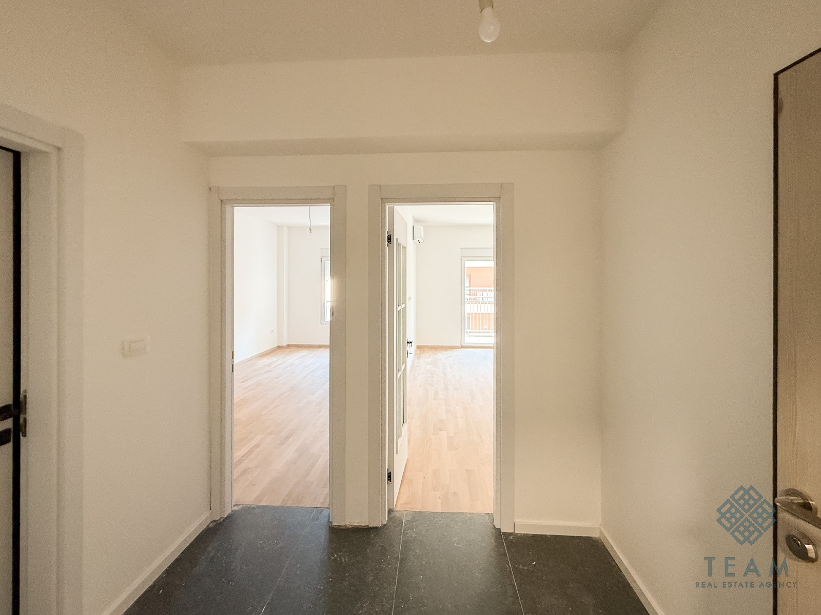 A one-bedroom apartment of 57m² is for sale, located in the Momišići neighborhood, Podgorica. The apartment is on the 3rd floor of a residential building under construction.