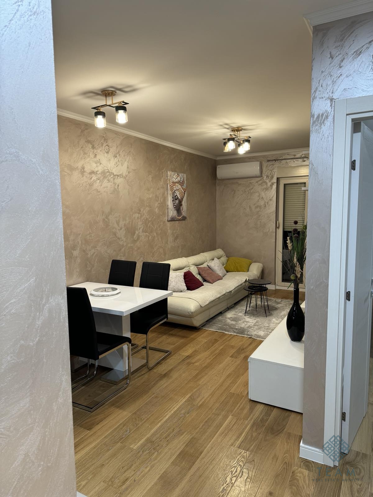 A fully furnished one-bedroom apartment of 40 m² is available for rent, located on the seventh floor of the popular residential complex Central Point, Podgorica.