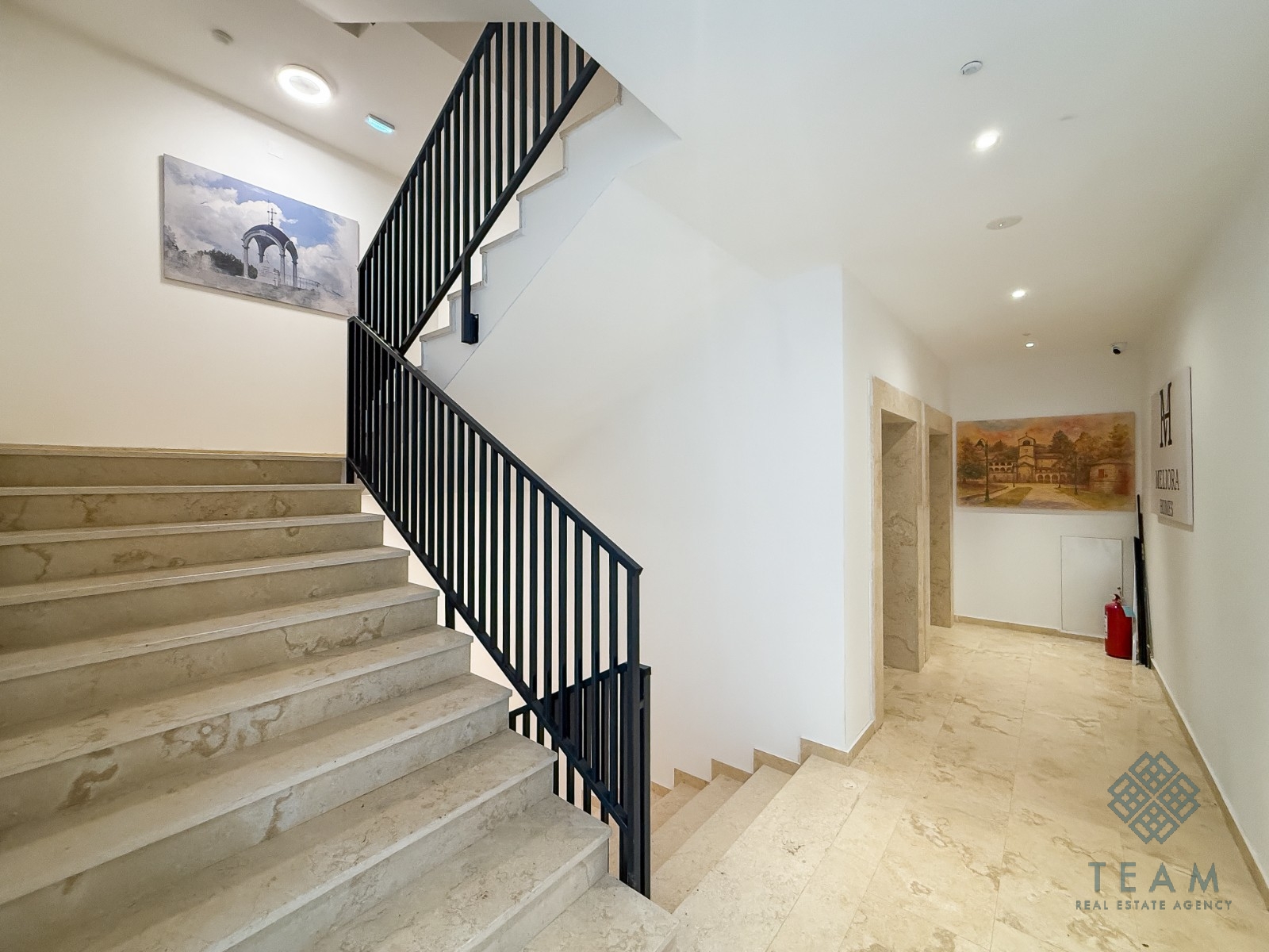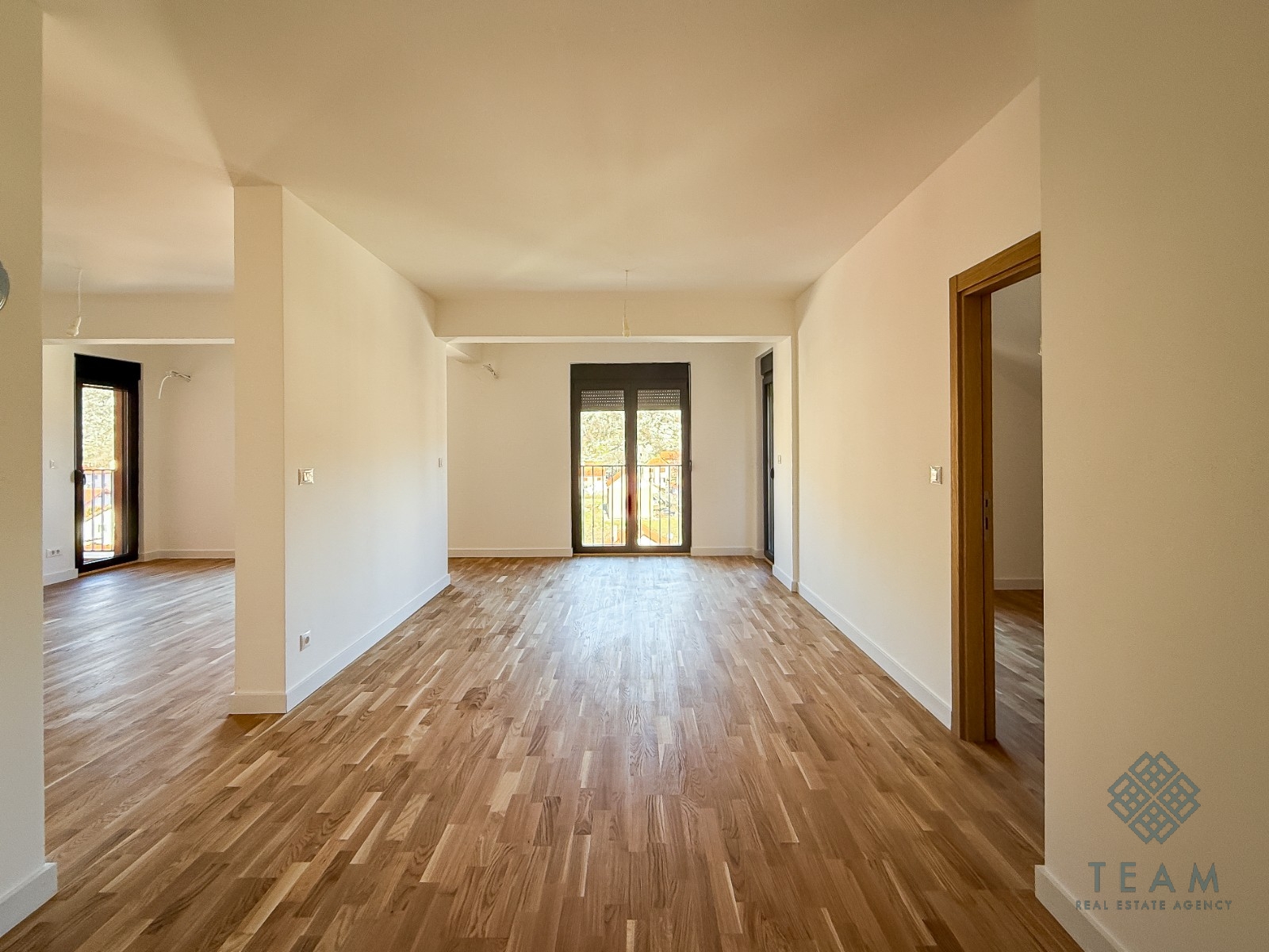 The apartment features a functional and high-quality layout with three bedrooms, one of which is a master bedroom with a private bathroom. Two large terraces and an additional French balcony add special value to the space, offering enjoyment of fresh air and open views.