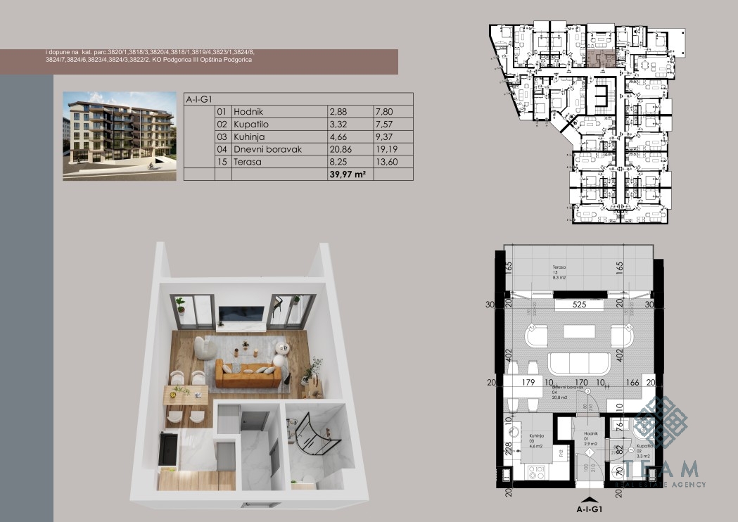 Prodaje se studio površine 40 m², dostupan na svim spratovima stambene zgrade u izgradnji Pod Ljubović, Podgorica.