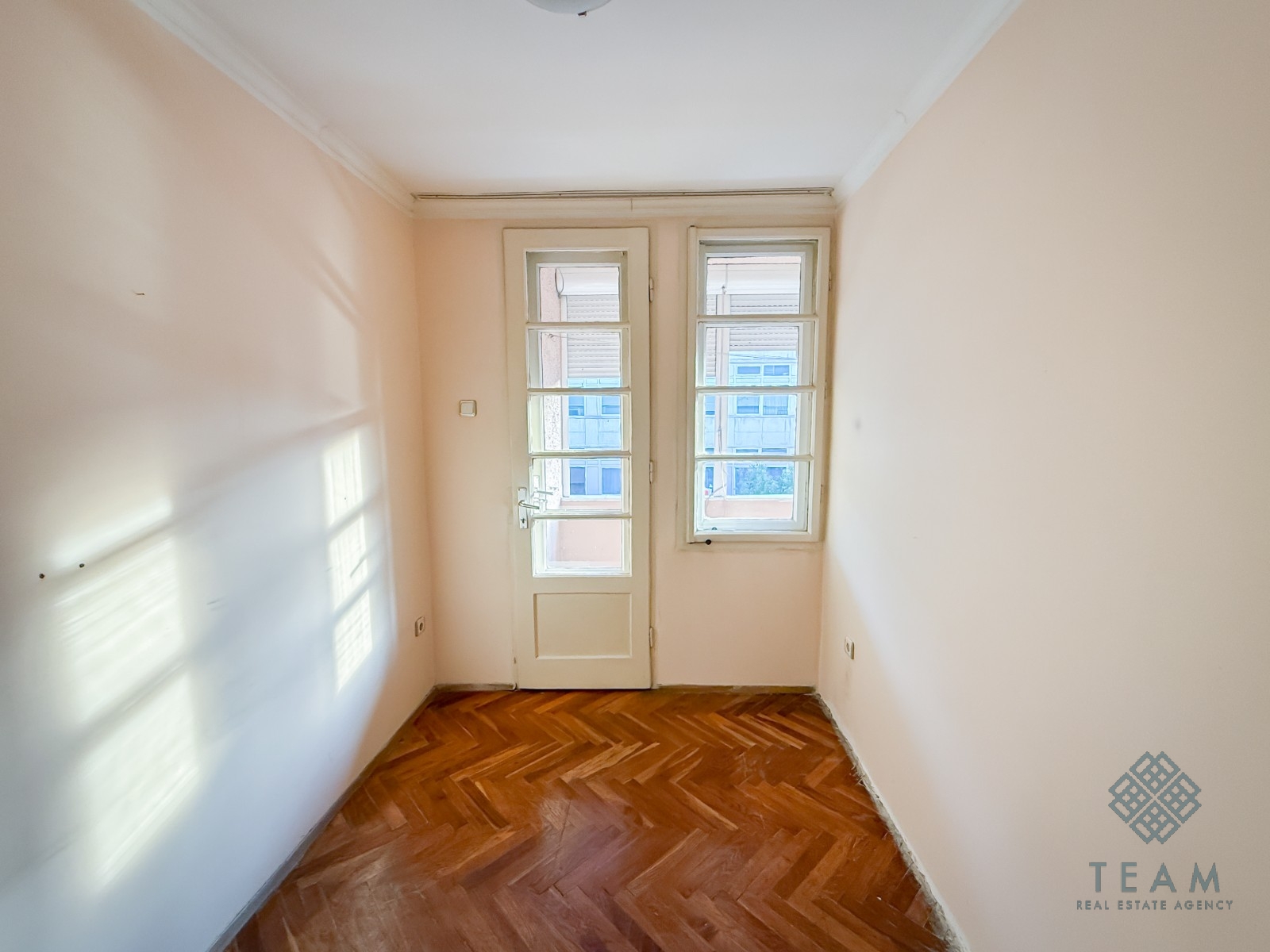 Stan posjeduje veliki potencijal — zahtijeva renoviranje, ali i uz minimalno ulaganje može se osvježiti i urediti tako da zadrži autentičan duh i fine arhitektonske detalje perioda u kom je izgrađen.