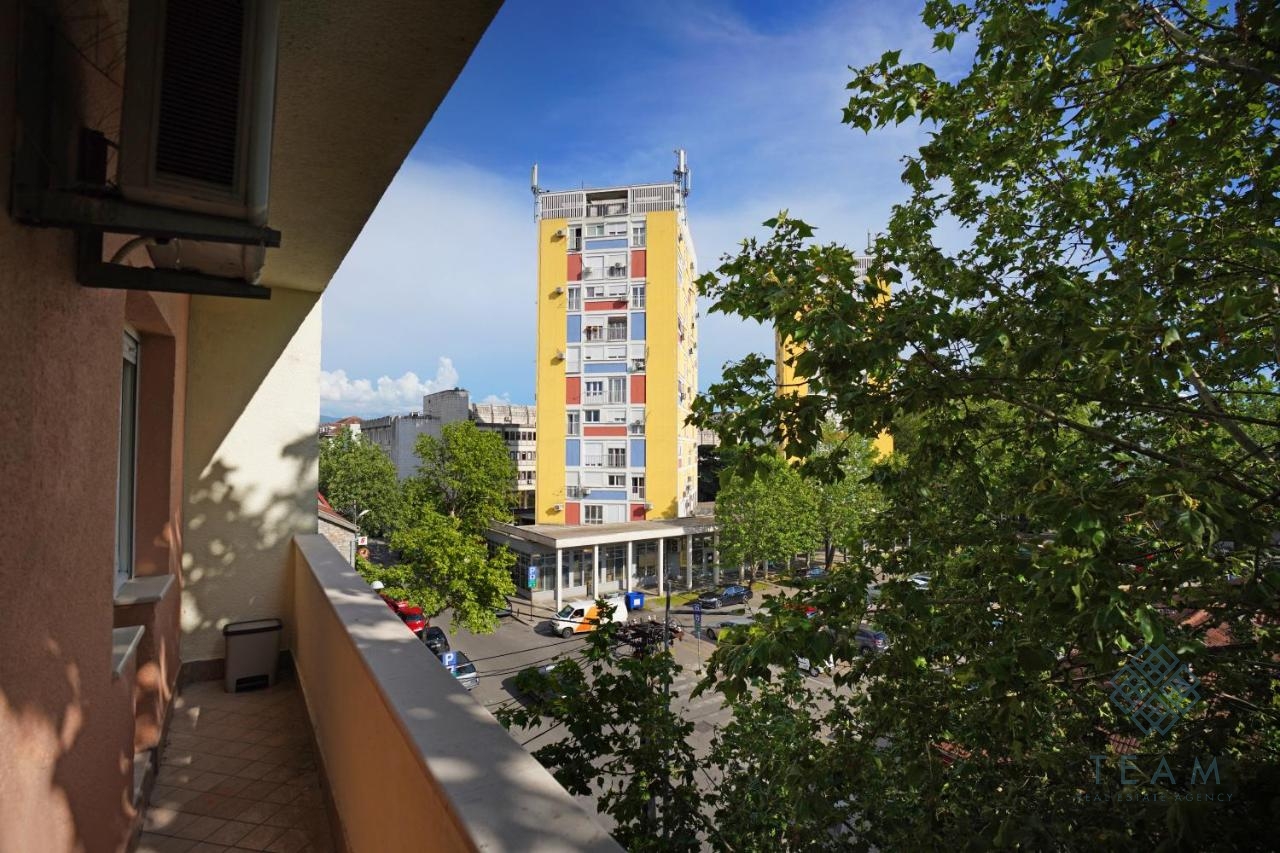 Izdaje se dvosoban stan površine 60 m², smješten na trećem spratu stambene zgrade u ulici Miljana Vukova, u samom centru Podgorice — jedna od najtraženijih lokacija u gradu.