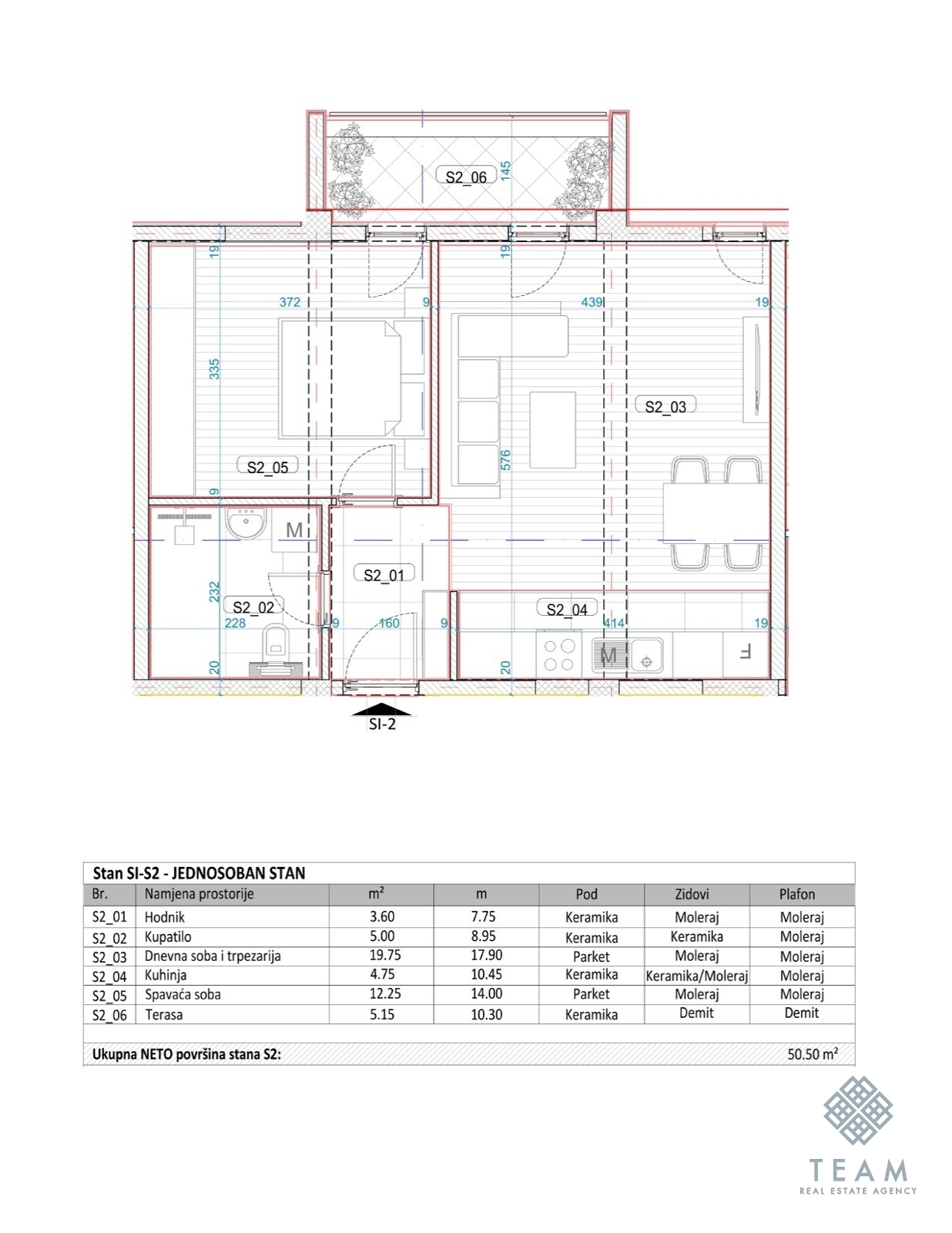 Stan je projektovan tako da kombinuje funkcionalnost, savremeni dizajn i visok kvalitet materijala. Obuhvata dnevni boravak sa kuhinjom i trpezarijom, spavaću sobu, kupatilo, hodnik i terasu.