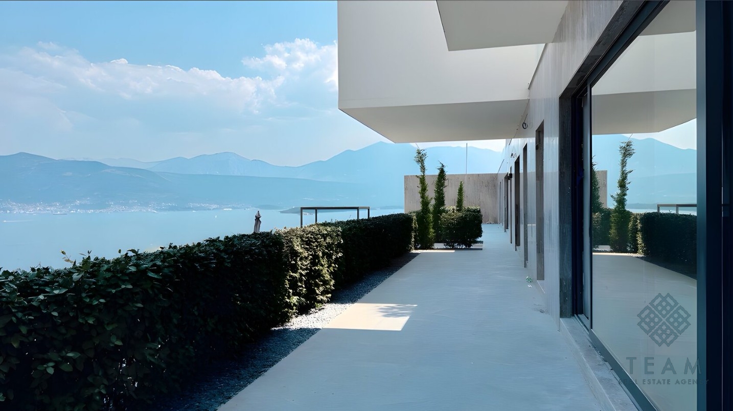 Prostrane panoramske staklene površine omogućavaju obilje prirodnog svjetla i pružaju očaravajući pogled na Bokokotorski zaliv, stvarajući osjećaj mira i inspirativnog životnog ambijenta.