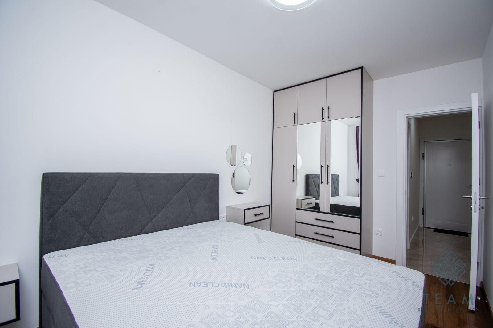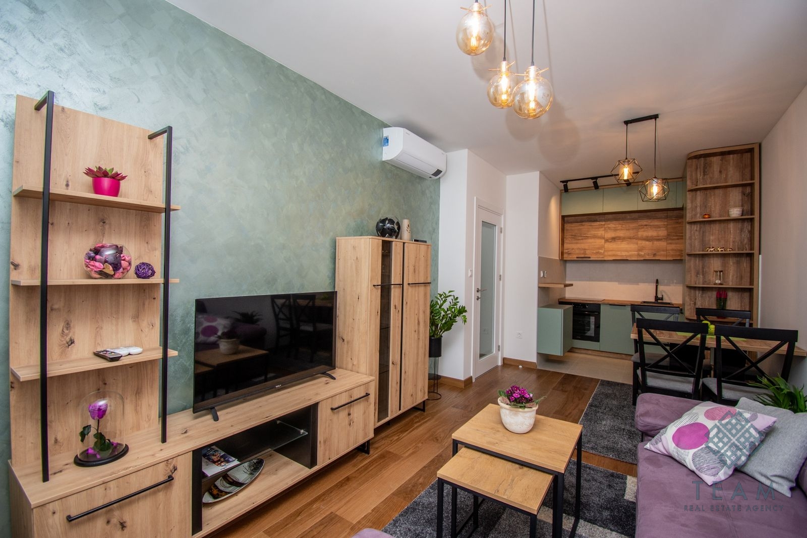 Izdaje se moderno opremljen jednosoban stan površine 50 m², smješten na prvom spratu luksuznog kompleksa Green Level – prva zgrada, Podgorica.