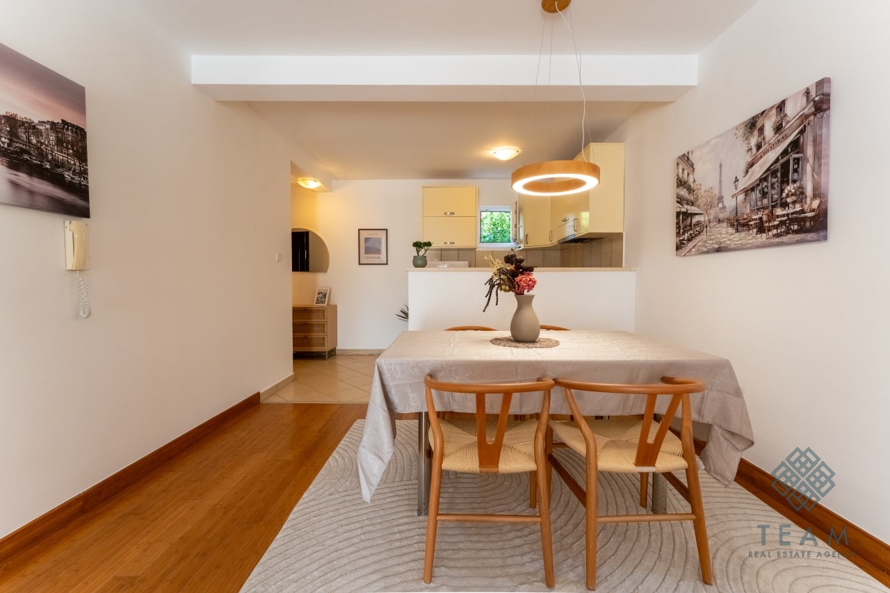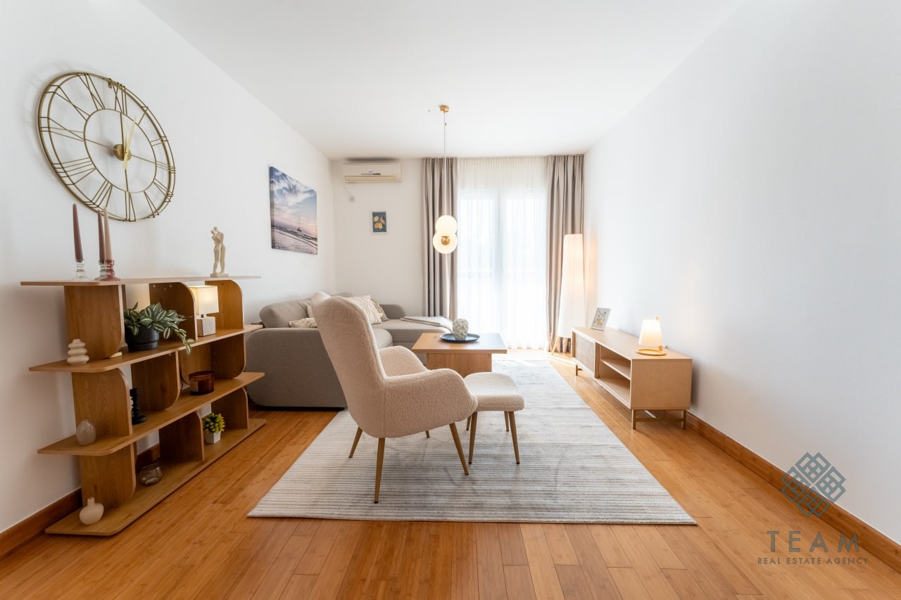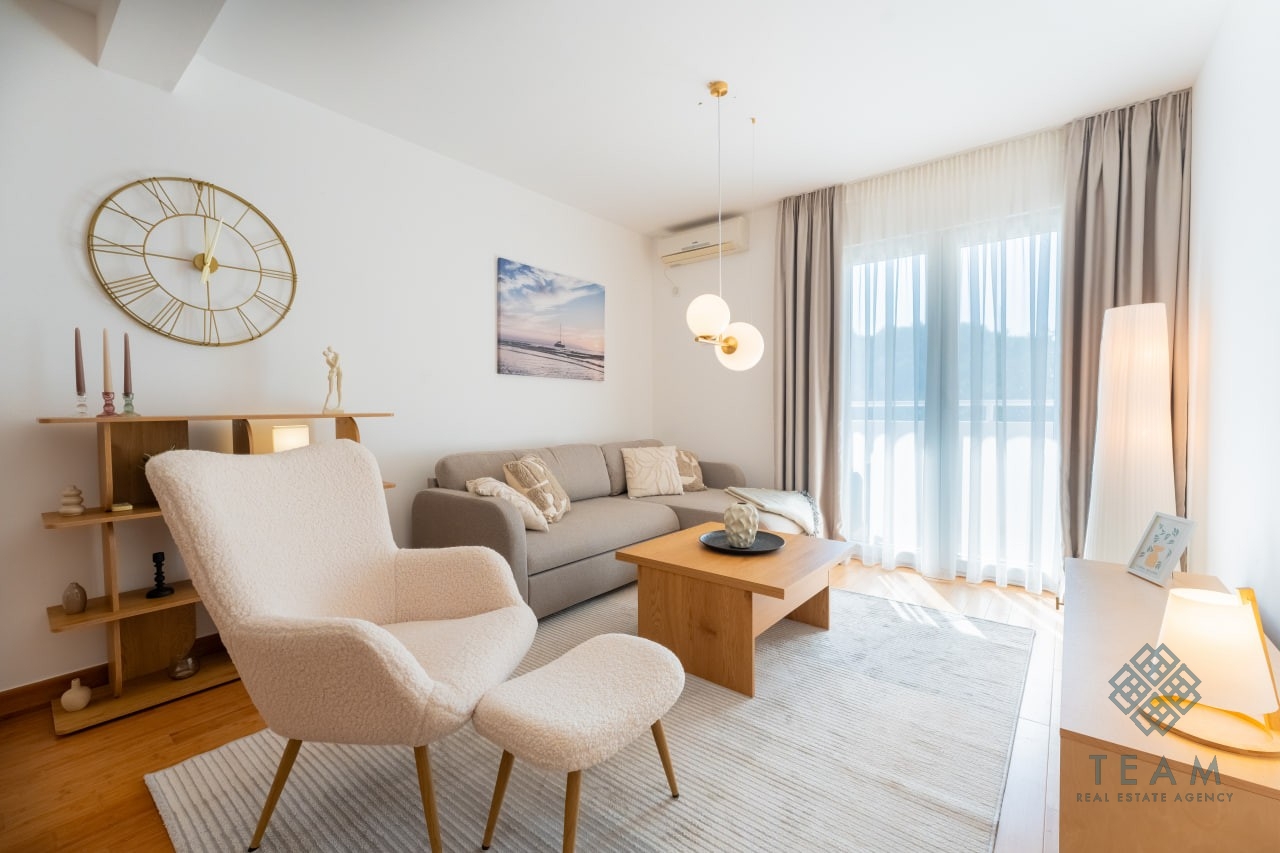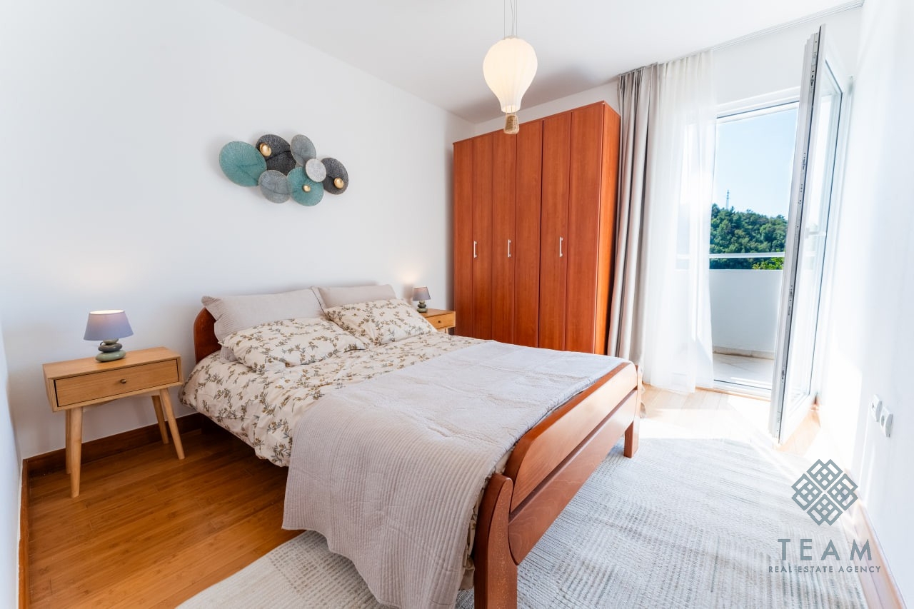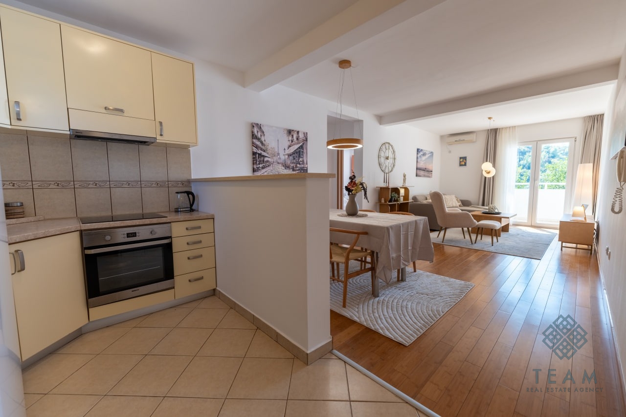Stan je nedavno renoviran, potpuno opremljen kvalitetnim namještajem i spreman za useljenje. Predstavlja idealnu opciju za porodični odmor ili kao investiciju za izdavanje tokom ljetnje sezone.