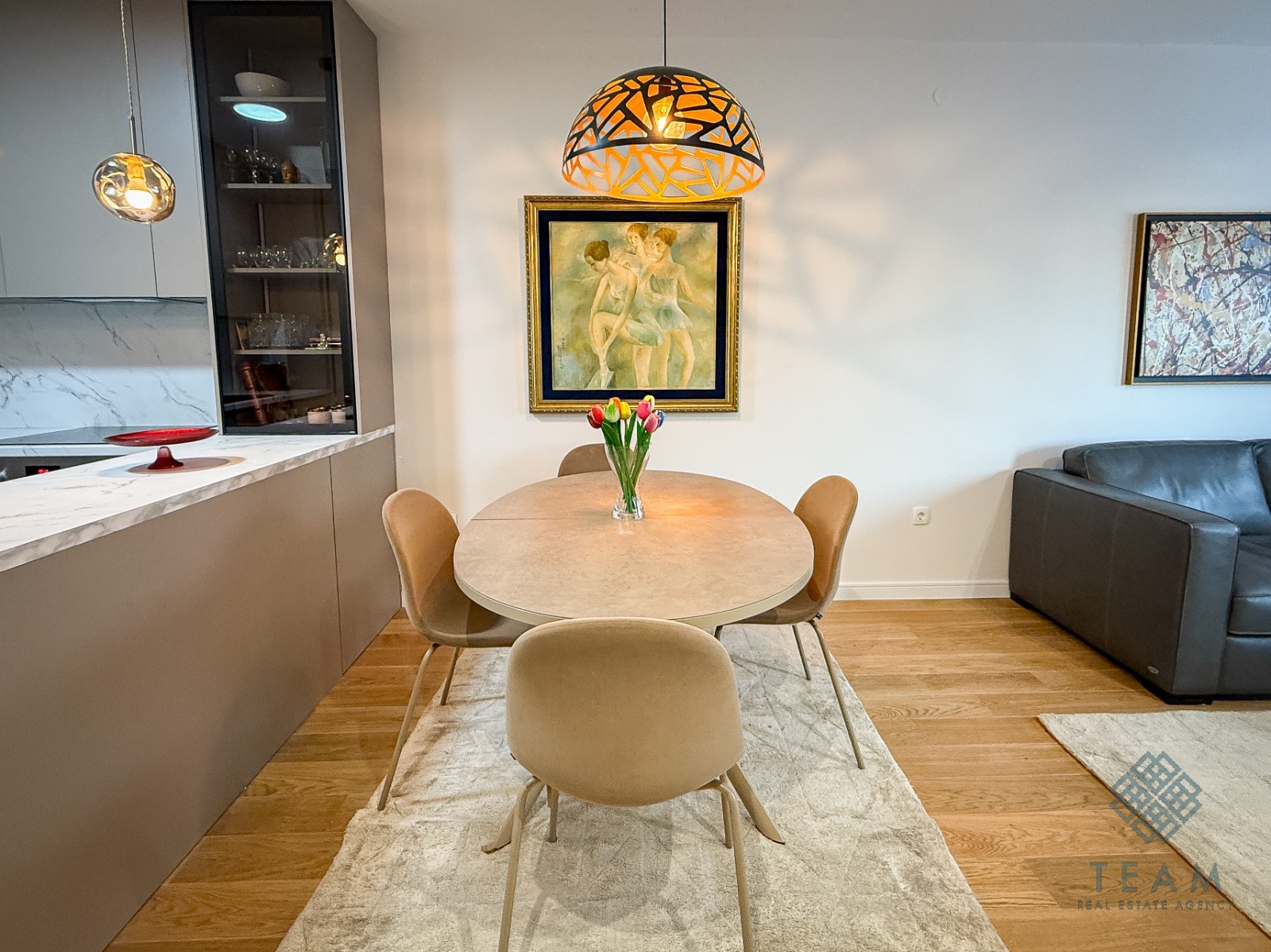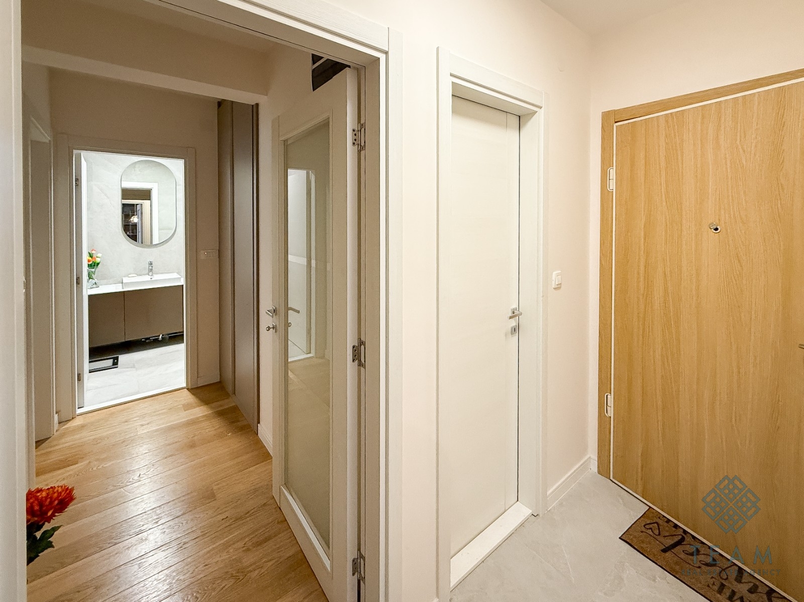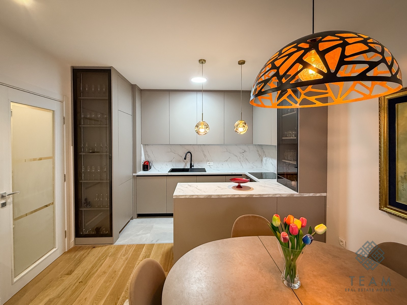 Izdaje se luksuzan, potpuno nov i neuseljavan dvosoban stan površine 74 m², smješten na 8. spratu u prestižnom naselju, Central Point. Stan je opremljen isključivo vrhunskim komadima brendova Natuzzi, Calligaris, Sitap i Bosch, što garantuje izuzetan komfor i kvalitet života.