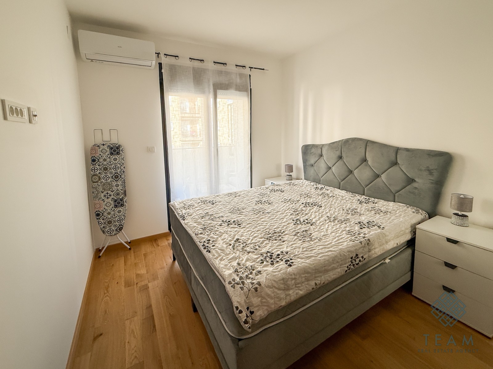 Izdaje se vrlo lijepo namješten jednosoban stan površine 45 m², smješten na drugom spratu u Acton kompleksu, iza Volija, City Kvart, Podgorica.