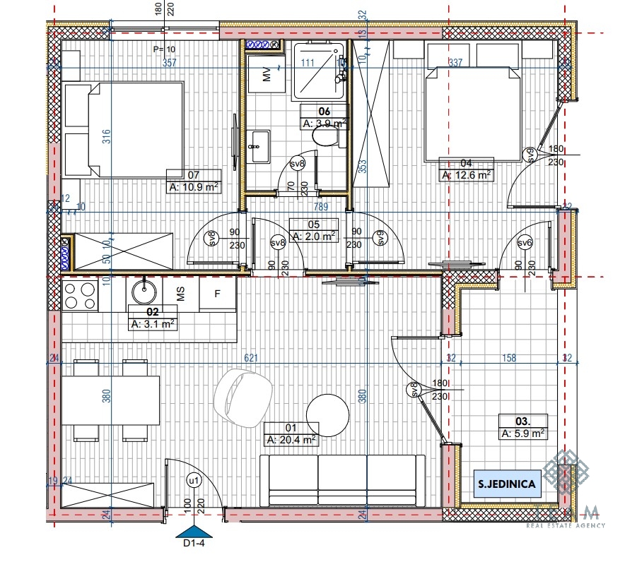 | Kvadratura: 59㎡ | Broj spavaćih soba: 2 | Broj balkona: 1 | Broj kupatila: 1 | Sprat 3 |