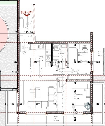 | Kvadratura: 83㎡ | Broj spavaćih soba: 2 | Broj balkona: 2 | Broj kupatila: 1 | Parking | Sprat 1 | Lift |