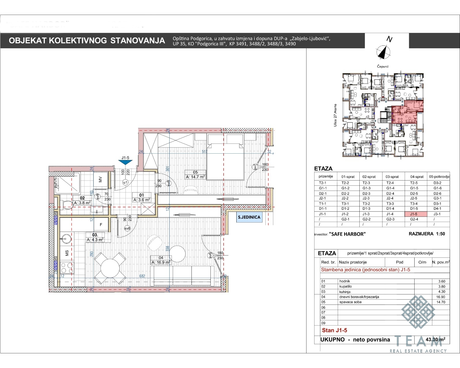Prodaje se jednosoban stan površine 43,30 m² u izgradnji na 4. spratu, u naselju Pod Ljubović, Podgorica.