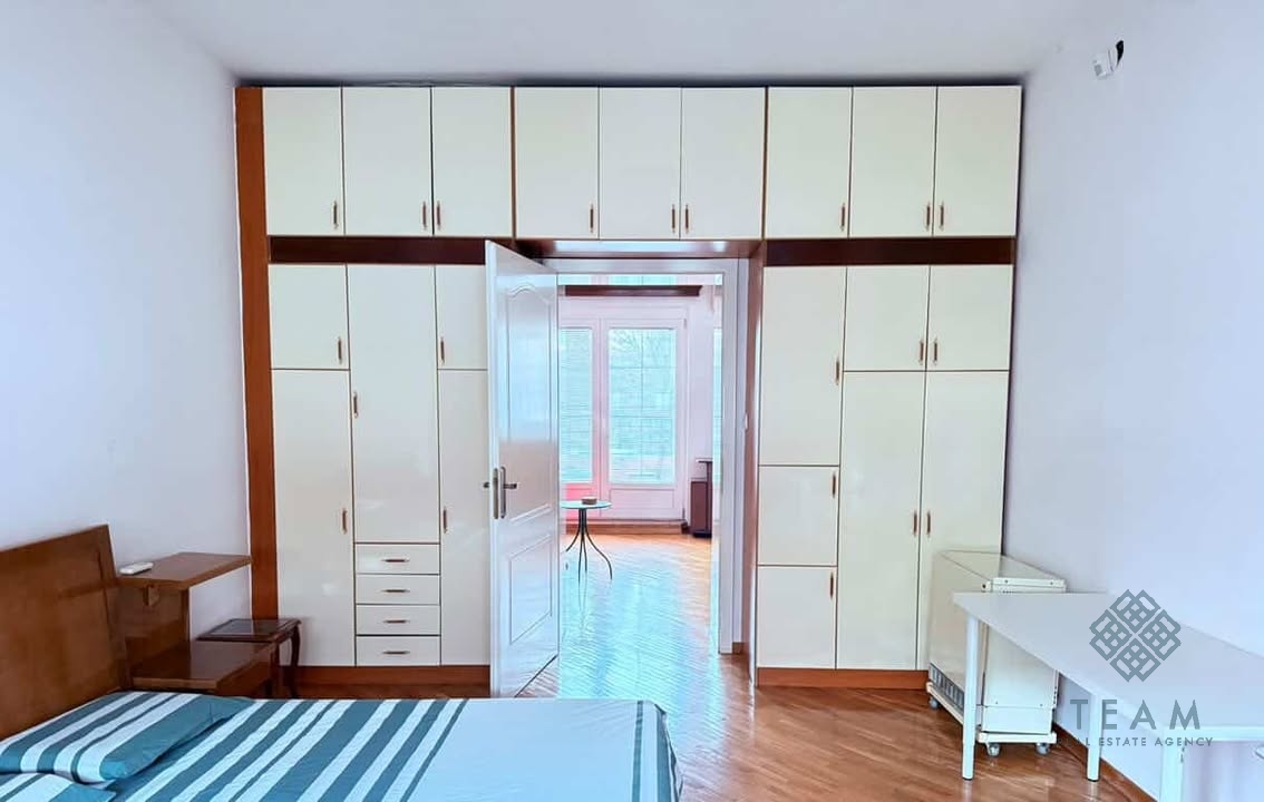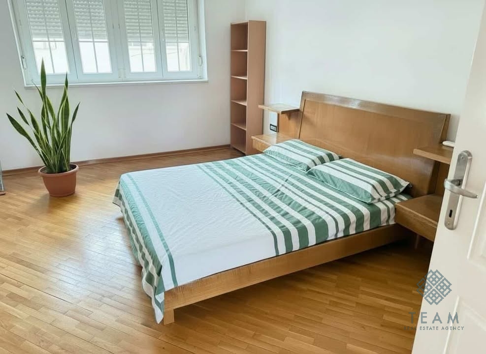 Izdaje se stan površine 55 m² smješten je na 3. spratu starije zgrade u centru Podgorice, Ulica slobode. Raspored je funkcionalan i komforan, sa terasa koja gleda na mali park iza zgrade, što stan čini svijetlim i prijatnim za boravak.