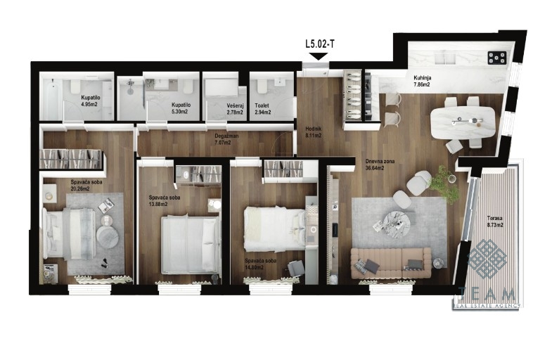 | Kvadratura: 133㎡ | Broj spavaćih soba: 3 | Broj balkona: 1 | Broj kupatila: 3 | Parking |