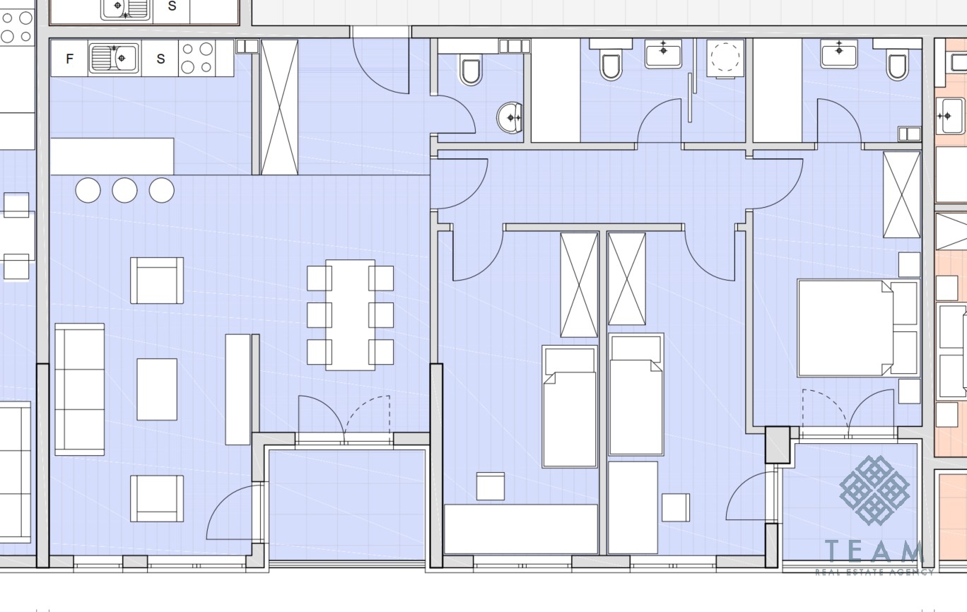 | Kvadratura: 109㎡ | Broj spavaćih soba: 3 | Broj balkona: 2 | Broj kupatila: 2 | Parking | Sprat 3 | Lift |