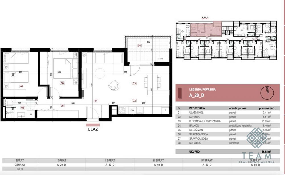 Na prodaji dvosoban stan povrsine 66,68m2 koji se nalazi na 5. spratu.