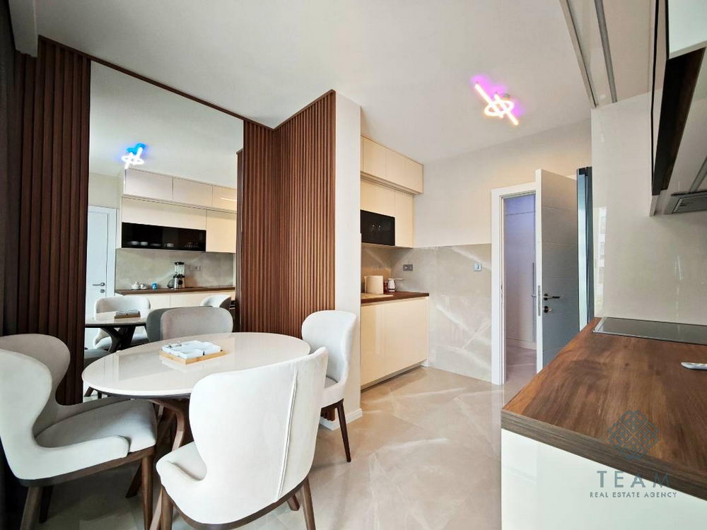 Квартира оформлена с особым вниманием к деталям и сочетает в себе современный дизайн и функциональность. Терраса выходит на тихий семейный район, обеспечивая ощущение уединения и комфорта.