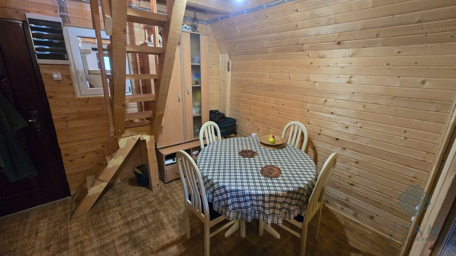 Дом утеплён со всех сторон, что обеспечивает комфорт в любое время года. На первом этаже находится просторная гостиная, небольшая кухня и столовая, а на втором — две спальни и небольшая ванная комната. Установлены новые ПВХ окна и двери.