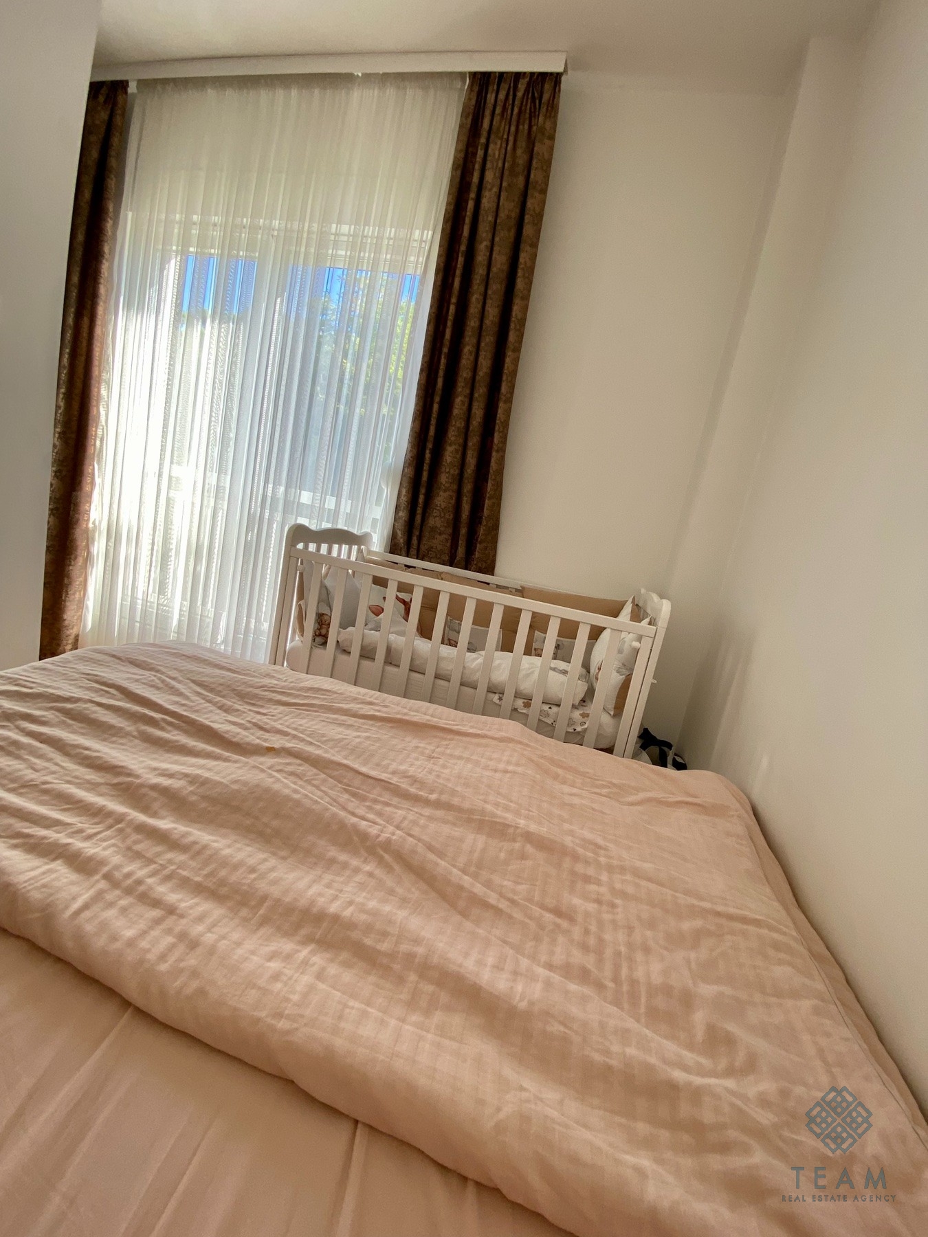 Продаётся полностью меблированная однокомнатная квартира площадью 35 м², расположенная на втором этаже современного жилого дома с пятью этажами. Здание новое, ему всего три года, оборудовано системой видеонаблюдения и двумя лифтами, что обеспечивает комфорт и безопасность проживания.