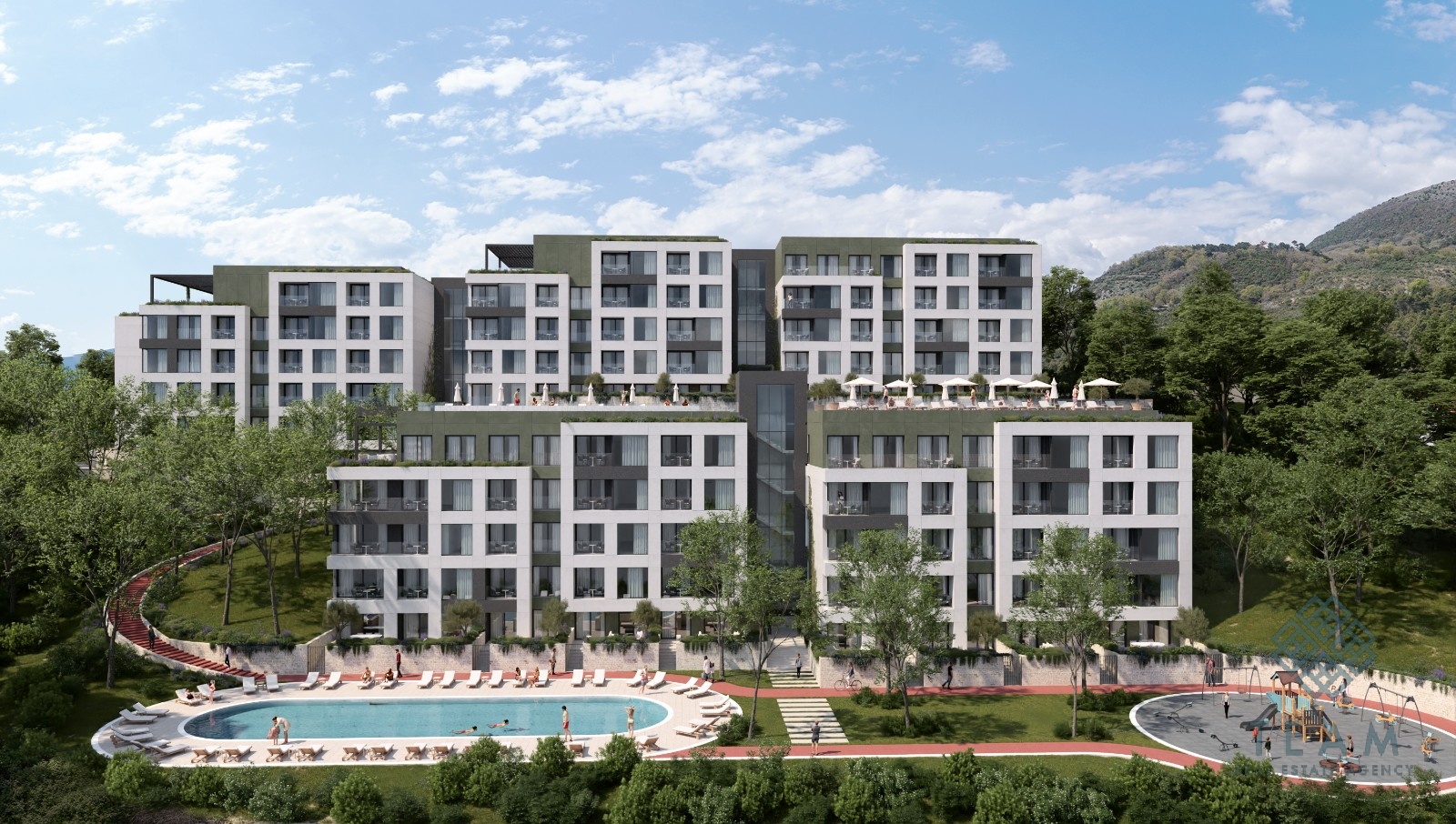 Комплекс расположен всего в 2 километрах от центра Тивата и Porto Montenegro, в тихом, зелёном районе. Благодаря возвышенному положению, квартиры получают много естественного света и ощущение уединённости, при этом сохраняя отличную связь с городской инфраструктурой и побережьем.