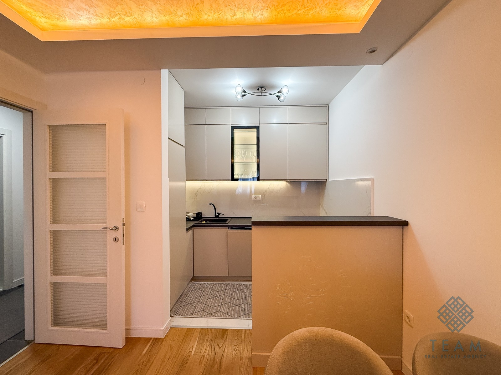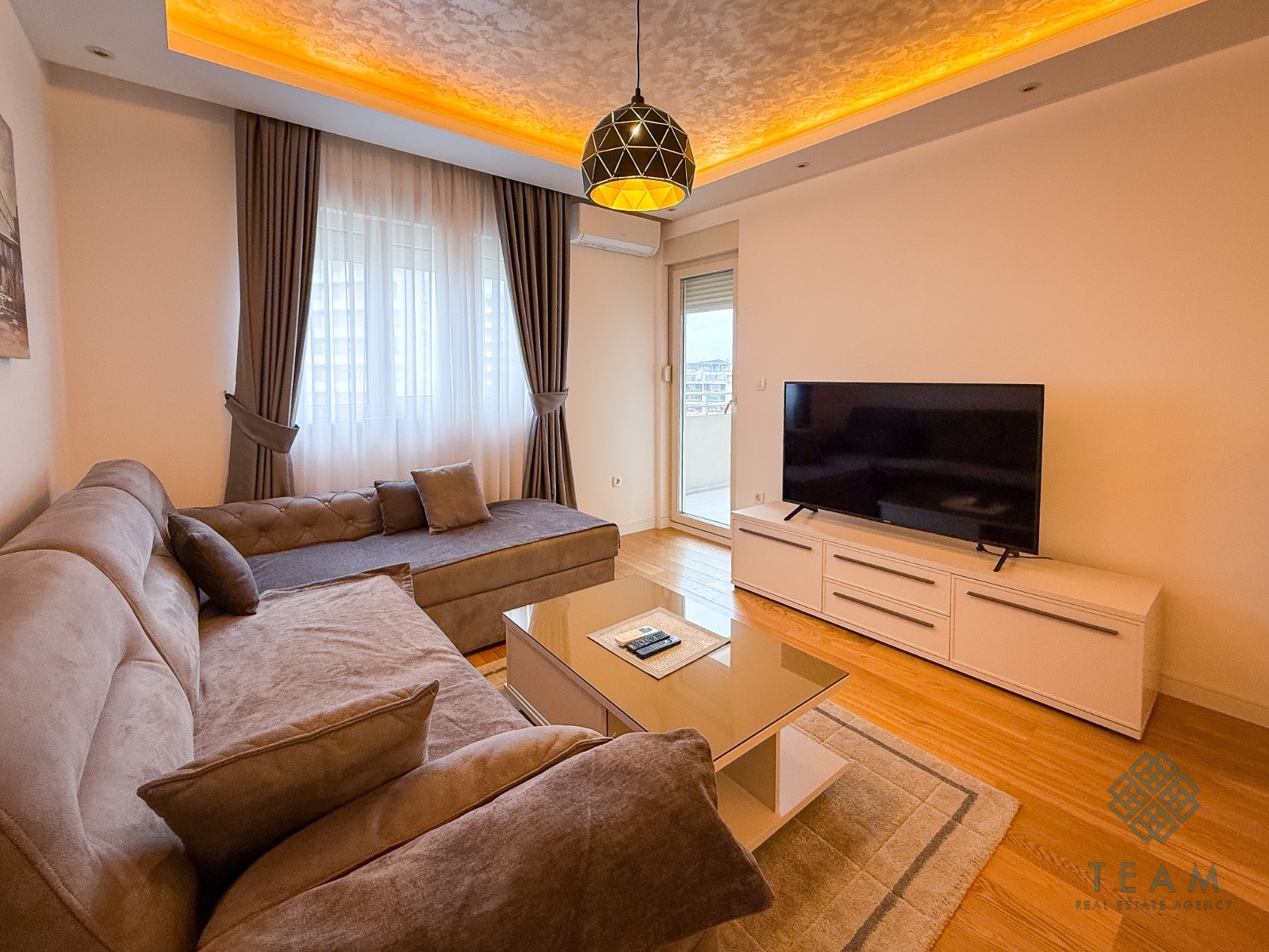 Сдается однокомнатная квартира площадью 49 м², расположенная на пятом этаже здания в комплексе Central Point — одном из самых востребованных районов Подгорицы.