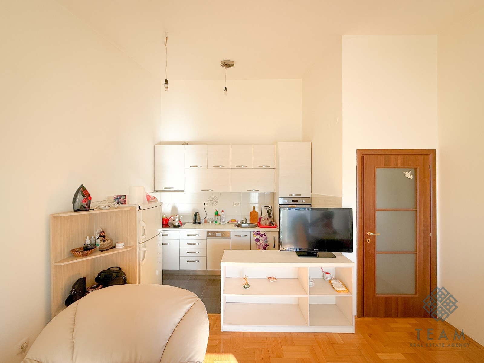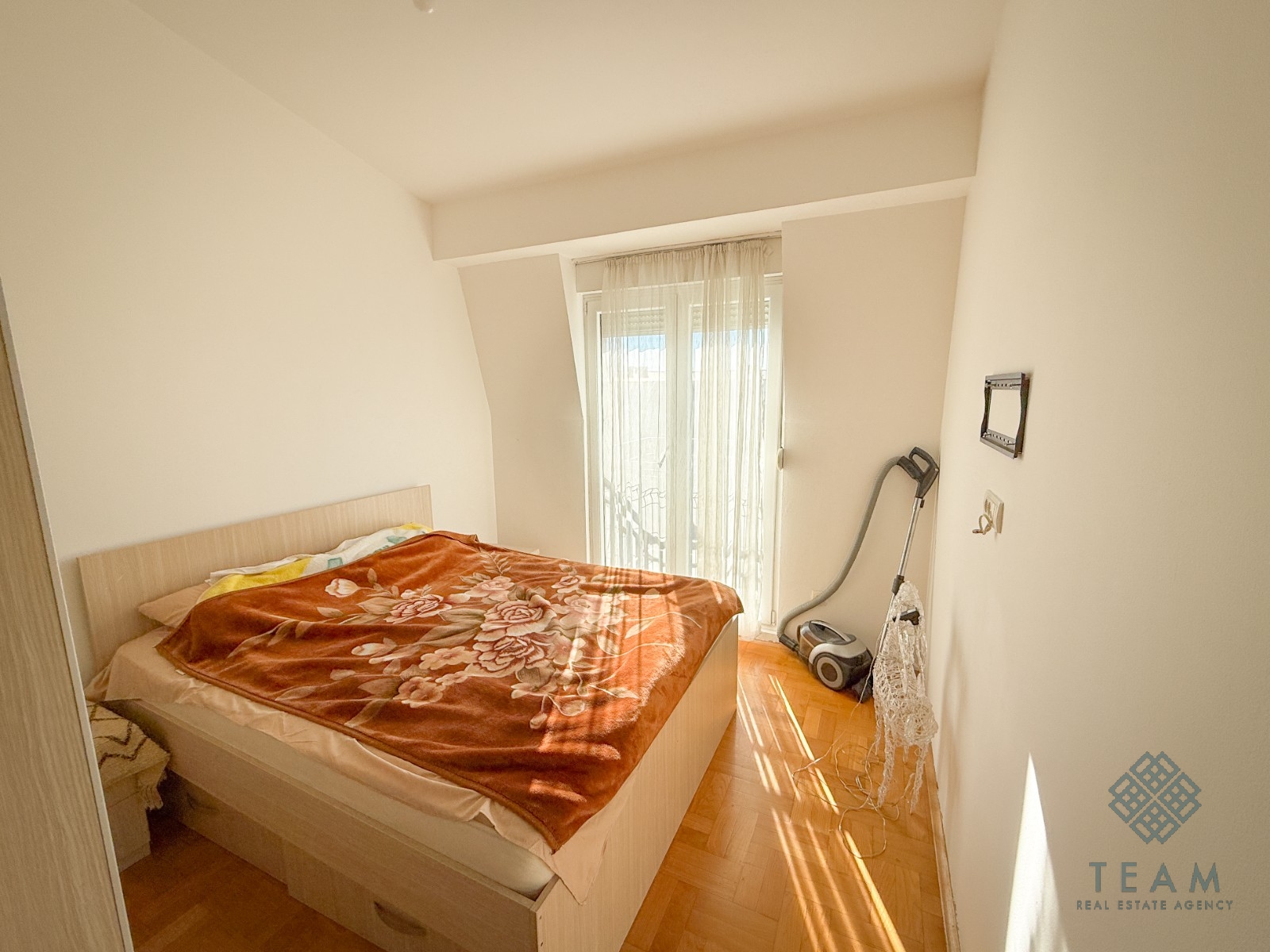 Продаётся просторная и очень светлая однокомнатная квартира площадью 43 м², расположенная на шестом этаже, в мансарде жилого дома в районе Стари Аэродром, Подгорица.