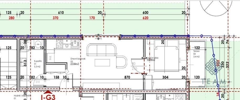 Здание построено из экологически чистых европейских материалов и занимает общую площадь 4 000 м², из которых 3 300 м² — зелёные зоны. Все квартиры имеют классическую южную ориентацию и большие стеклянные проёмы, обеспечивающие обилие естественного света.