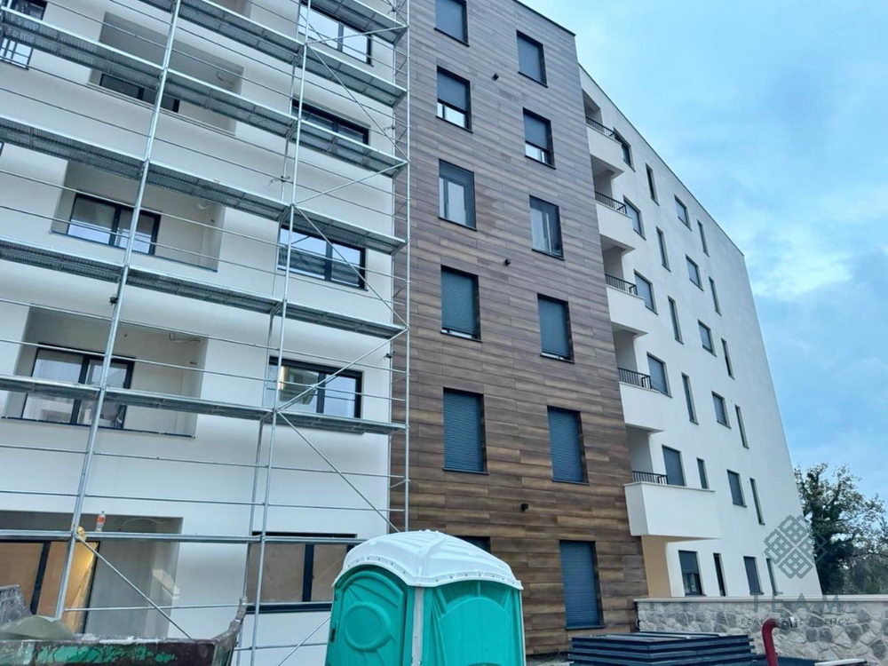 Квартира расположена в здании над отелем "Splendid". Здание будет готово к заселению к июлю 2024 года. Структура квартиры включает прихожую, кухню и гостиную с выходом на террасу, главную спальню с ванной и выходом на террасу, вторую спальню и вторую ванную комнату.