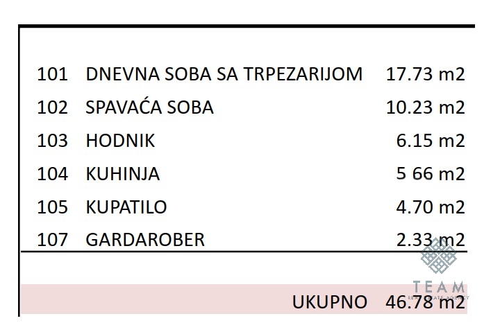 Podgorica, Vojislavljevića Caddesi'nde yer alan 46,78 m² büyüklüğünde bir yatak odalı daire satıştadır. Daire, modern bir konut binasında yer almakta olup, inşaat hâlindedir. Teslimat ve taşınma tarihi 2026 yılının sonu olarak planlanmıştır.