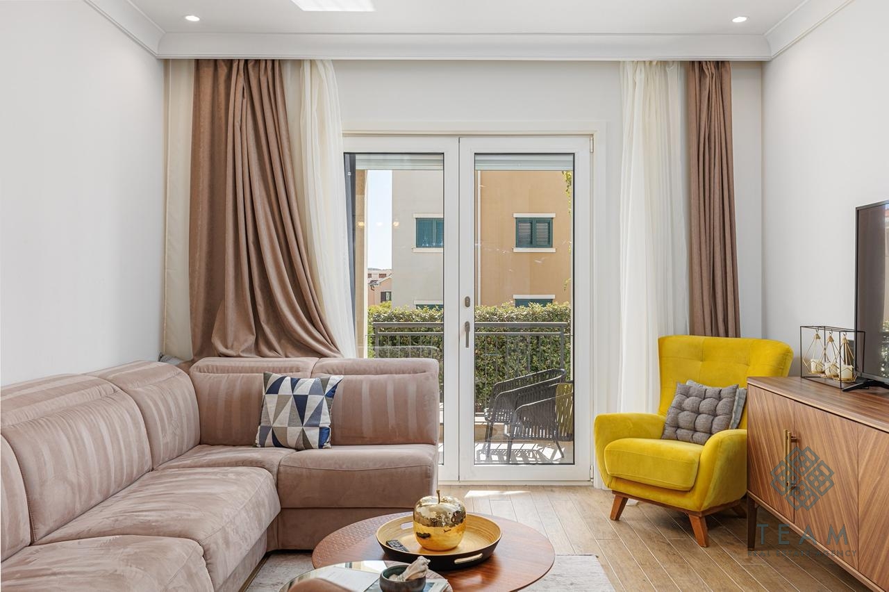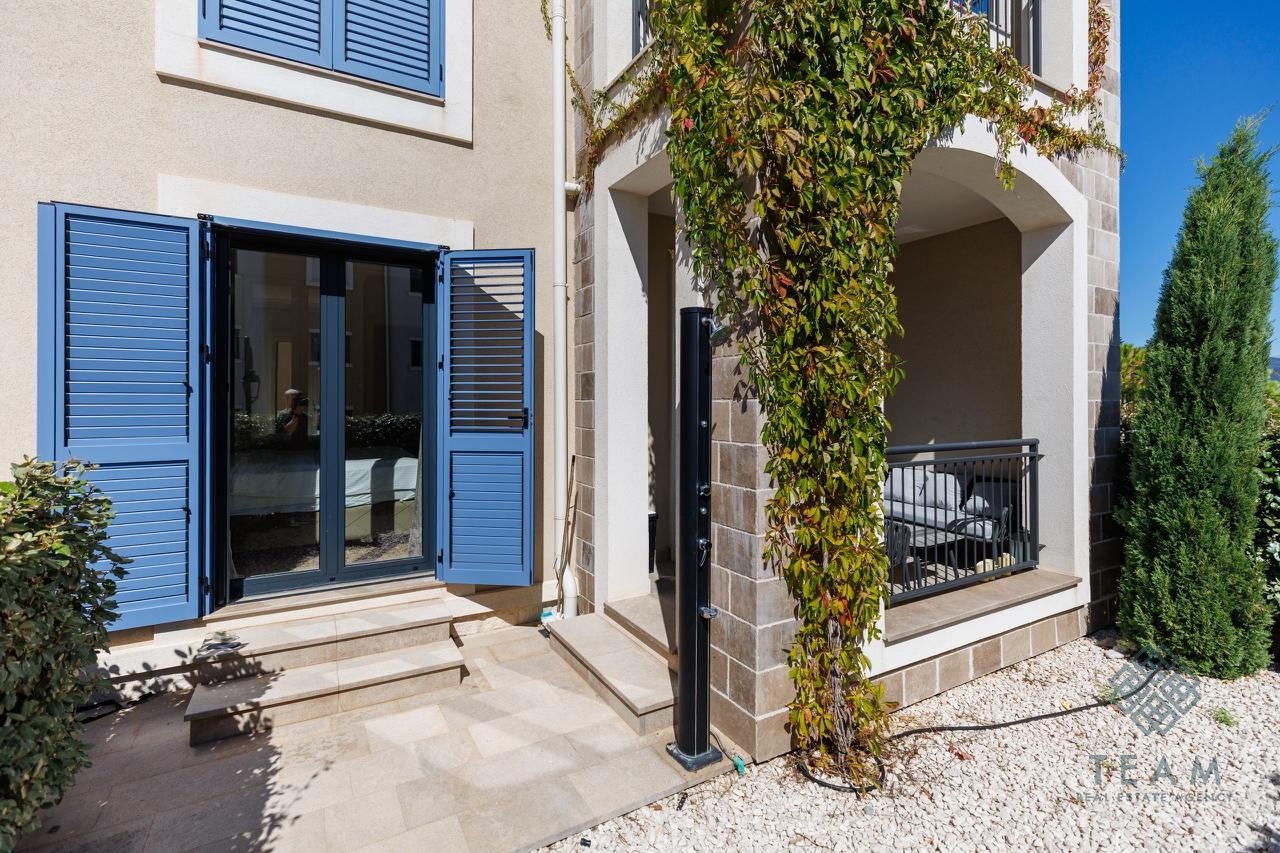 Prestijli Luštica Bay bölgesinin Centrale mahallesinde yer alan, toplam 73 m² (50 m² + 23 m²) alana sahip özel bahçeli modern bir bir odalı daire satılıktır.