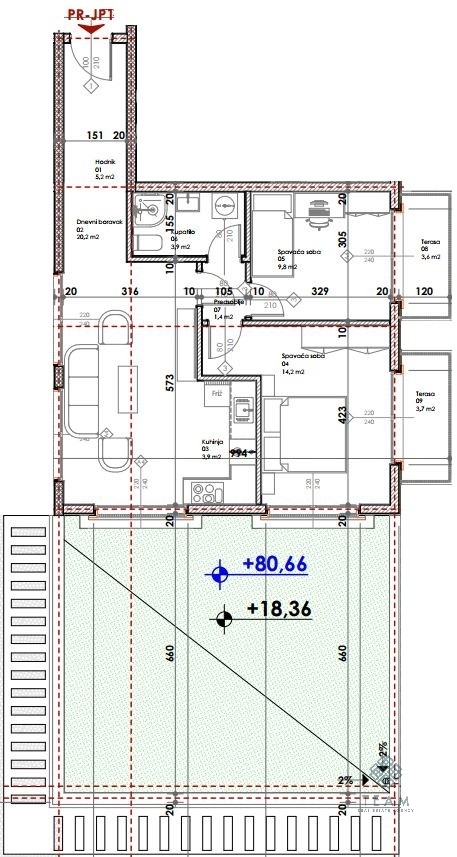 Budva’da deniz manzaralı, yeşil teraslı ve özel havuzlu 115,76 m² geniş iki odalı daire satılıktır.