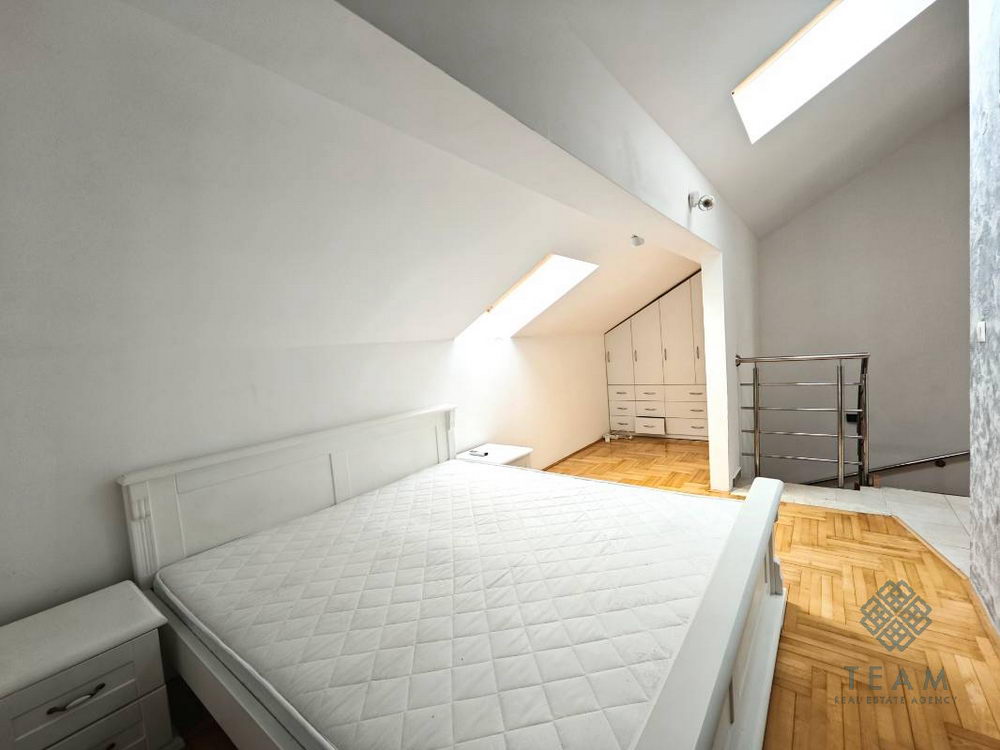 Kiralık: Mobilyalı bir odalı çatı dubleksi 55m² Pod Ljubović, Podgorica"da kiralıktır. Daire, asansörlü yeni bir binanın beşinci katında yer almaktadır.